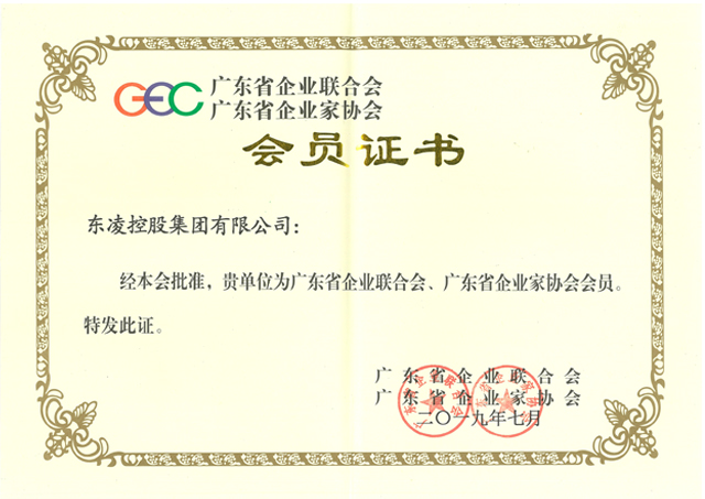 广东省企业联合会、广东省企业家协会会员证书