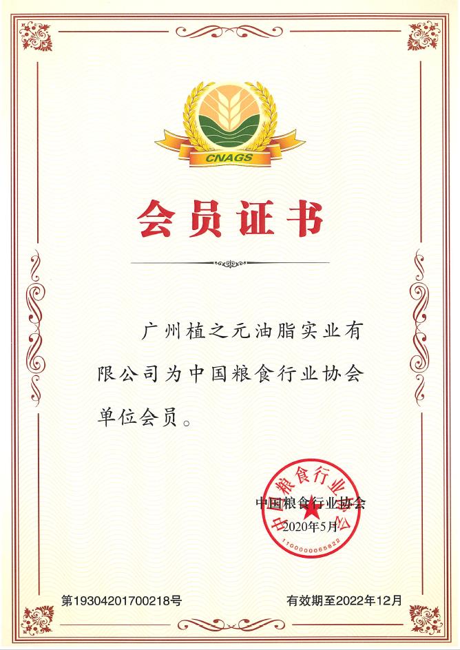 中国粮食行业协会会员证书