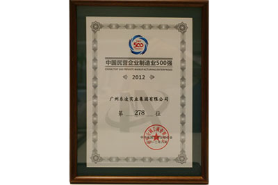 广州乐动平台实业集团有限公司荣获国民营企业制造业500强--2012年